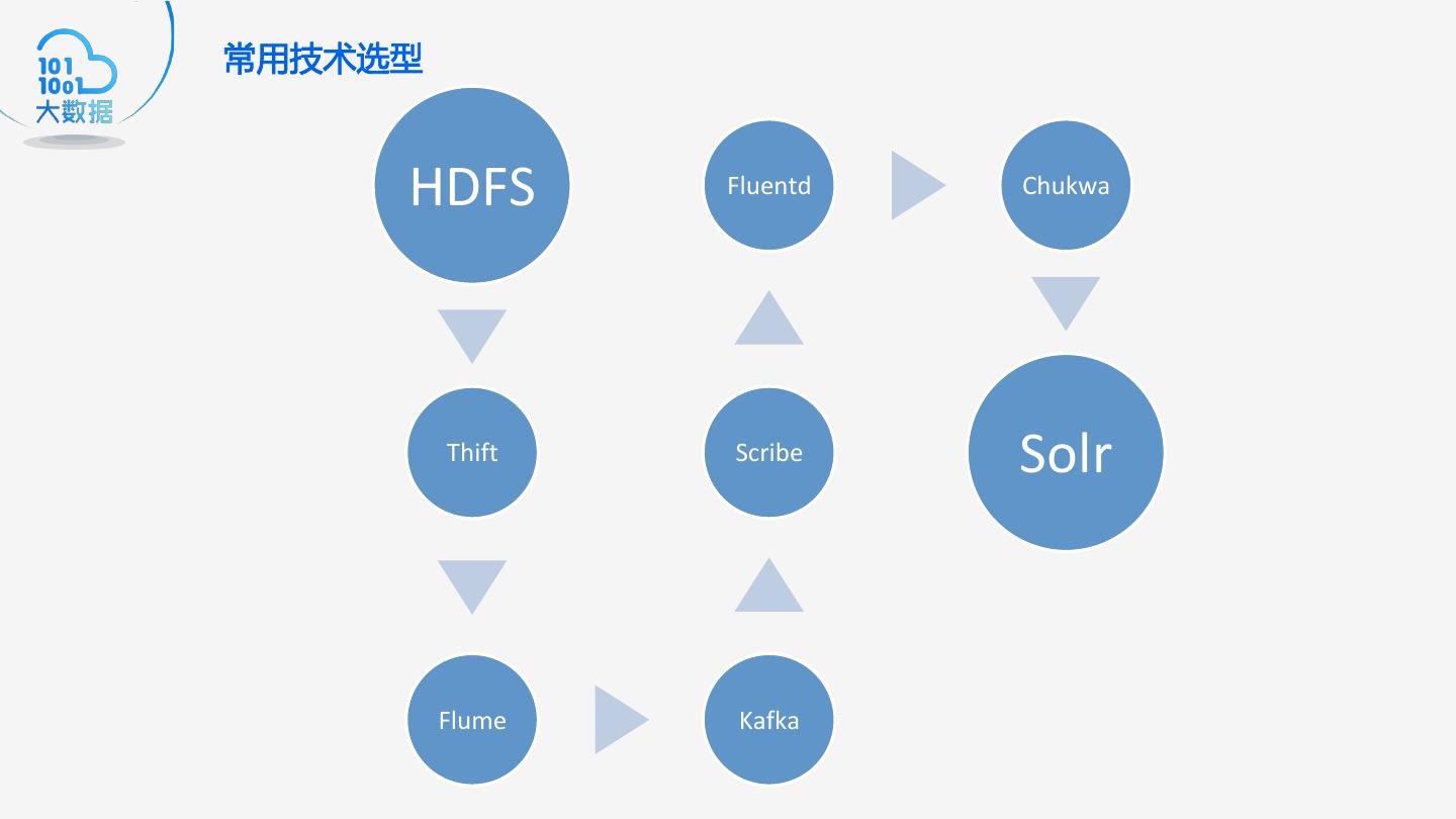 19 .常用技术选型 HDFS Fluentd Chukwa Thift Scribe Solr Flume Kafka