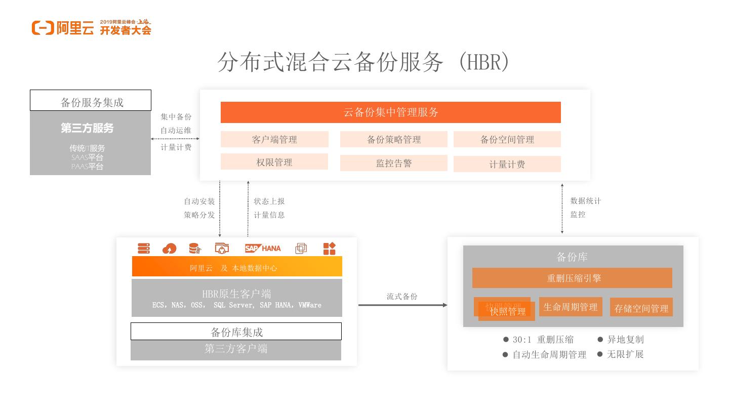 10 . 分布式混合云备份服务 (HBR) 备份服务集成 集中备份 云备份集中管理服务 第三方服务 自动运维 公共云存储 客户端管理 备份策略管理 备份空间管理 传统IT服务 计量计费 SAAS平台 PAAS平台 权限管理 监控告警 计量计费 自动安装 状态上报 数据统计 策略分发 计量信息 监控 备份库 阿里云 及 本地数据中心 重删压缩引擎 HBR原生客户端 流式备份 ECS,NAS,OSS, SQL Server, SAP HANA,VMWare 快照管理 生命周期管理 快照管理 存储空间管理 备份库集成 30:1 重删压缩 异地复制 第三方客户端 无限扩展 自动生命周期管理