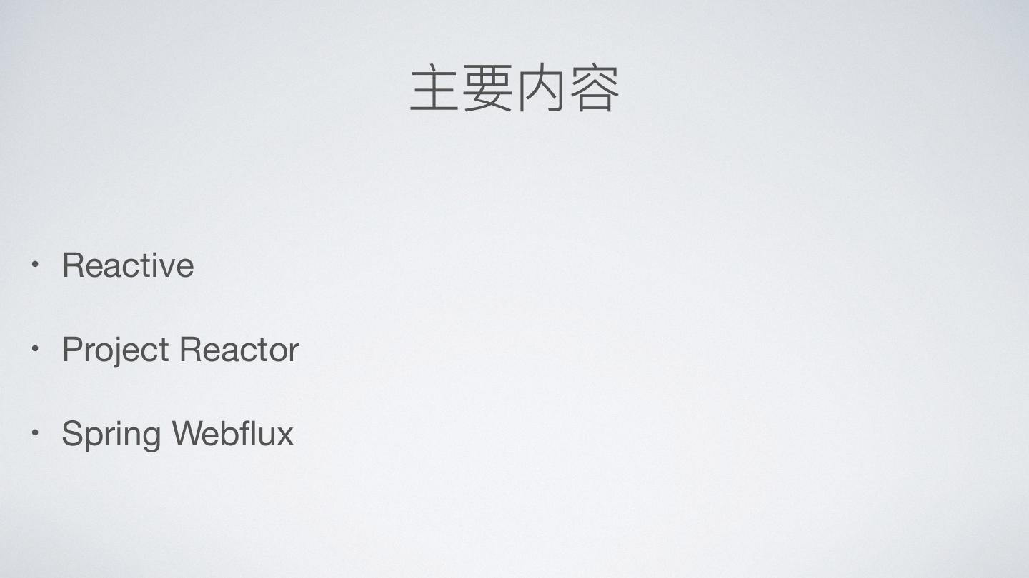 3 . 主要内容 • Reactive • Project Reactor • Spring Webflux