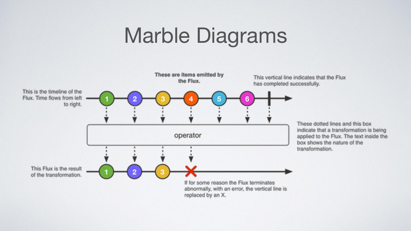 22 . Reactor Example private static List<String> words = Arrays.asList( "the", "quick", "brown", "fox", "jumped", "over", "the", "lazy", "dog"); Flux.fromIterable(words) .flatMap(word -> Flux.fromArray(word.split(""))) .concatWith(Mono.just("s")).distinct().sort() .zipWith(Flux.range(1, Integer.MAX_VALUE), (string, count) -> String.format("%2d. %s", count, string) ) .subscribe(System.out::println);