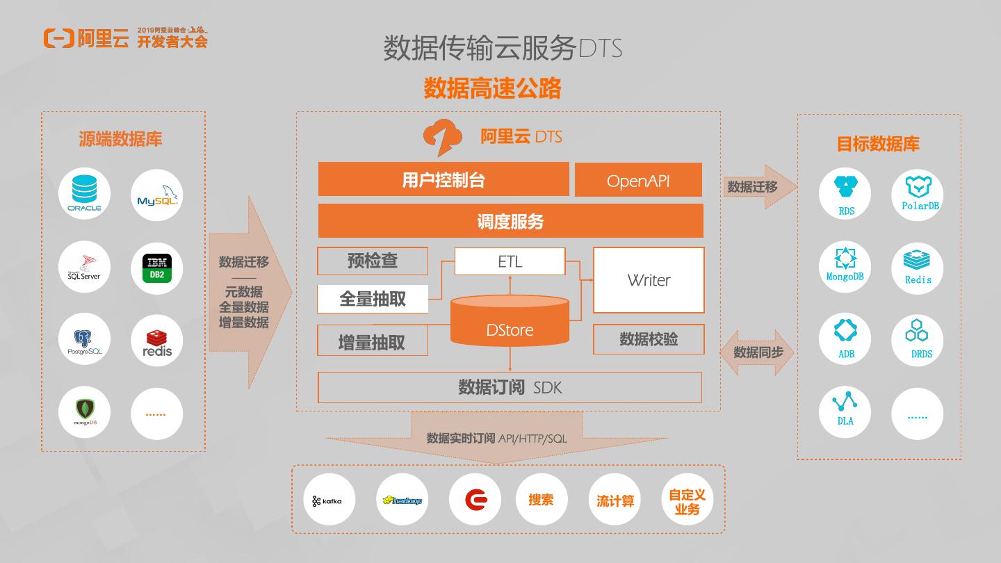 18 . POLARDB架构细节 ECS ECS Intelligent proxy PolarProxy 主地址 焦群地址 POLARDB 100% Compatible PolarFS PolarProxy 接入代理 Storage Optimized PolarStore For Database 主节点 读节点 读节点 … 读节点 数据库引擎 已发布: MySQL 5.6 / 8.0 兼容版 PolarStore 共享存储 公测中: Oracle, PostgreSQL 11 兼容版 POLARDB