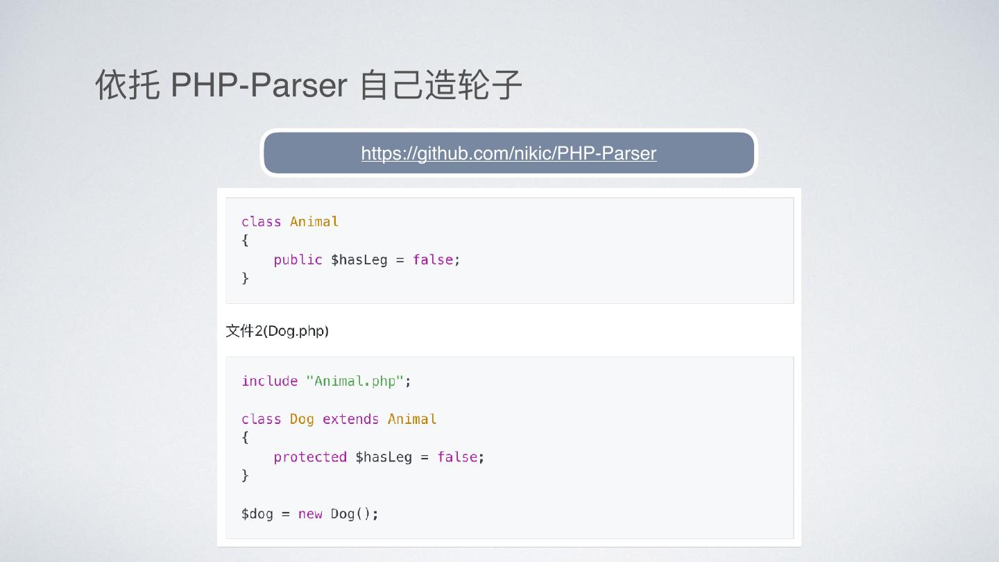 21 .依托 PHP-Parser ⾃自⼰己造轮⼦子 https://github.com/nikic/PHP-Parser