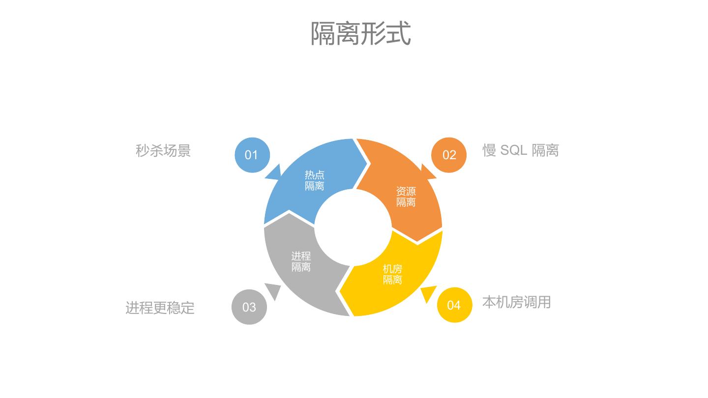 24 . 隔离形式 直接复制你的内容到此 秒杀场景 01 02 慢 SQL 隔离 热点 隔离 资源 隔离 进程 隔离 机房 隔离 进程更稳定 03 04 本机房调用