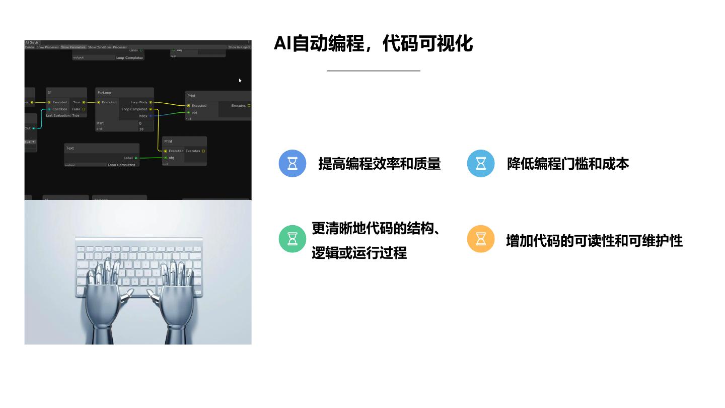 16 .AI自动编程,代码可视化 提高编程效率和质量 降低编程门槛和成本 更清晰地代码的结构、 增加代码的可读性和可维护性 逻辑或运行过程