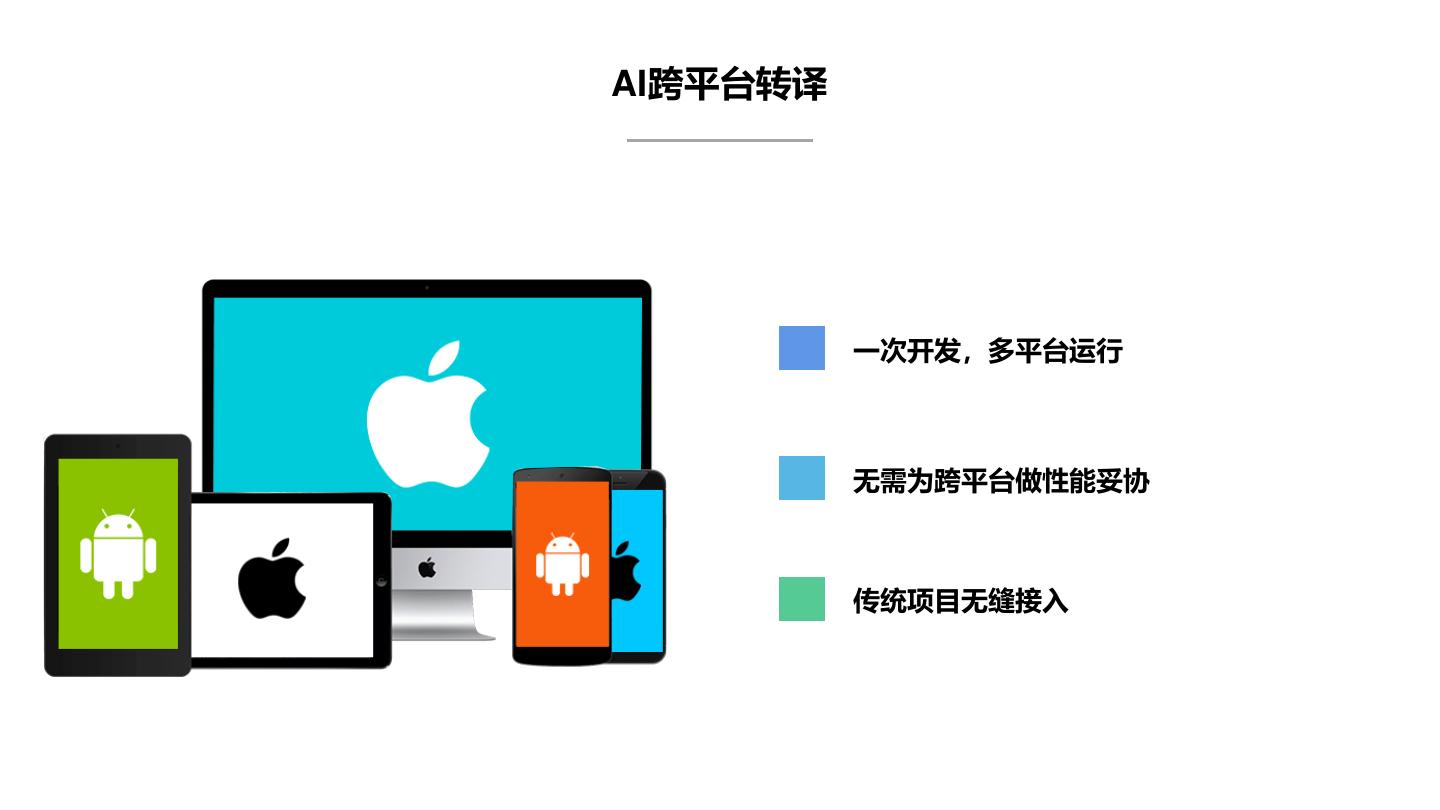 17 .AI跨平台转译 一次开发,多平台运行 无需为跨平台做性能妥协 传统项目无缝接入