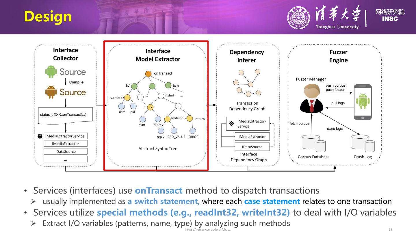 14 .Design 网络研究院 INSC • Features of interface ❏ Services use onTransact method to dispatch transactions https://netsec.ccert.edu.cn/chaoz 14