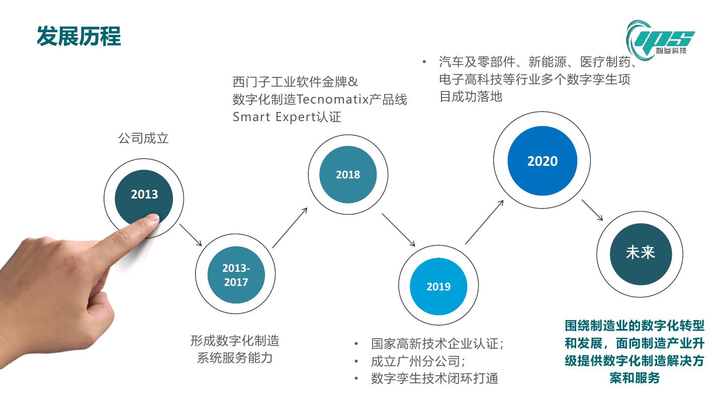 5 .发展历程 • 汽车及零部件、新能源、医疗制药、 西门子工业软件金牌& 电子高科技等行业多个数字孪生项 数字化制造Tecnomatix产品线 目成功落地 Smart Expert认证 公司成立 2020 2018 2013 未来 2013- 2017 2019 围绕制造业的数字化转型 形成数字化制造 • 国家高新技术企业认证; 和发展,面向制造产业升 系统服务能力 • 成立广州分公司; 级提供数字化制造解决方 • 数字孪生技术闭环打通 案和服务