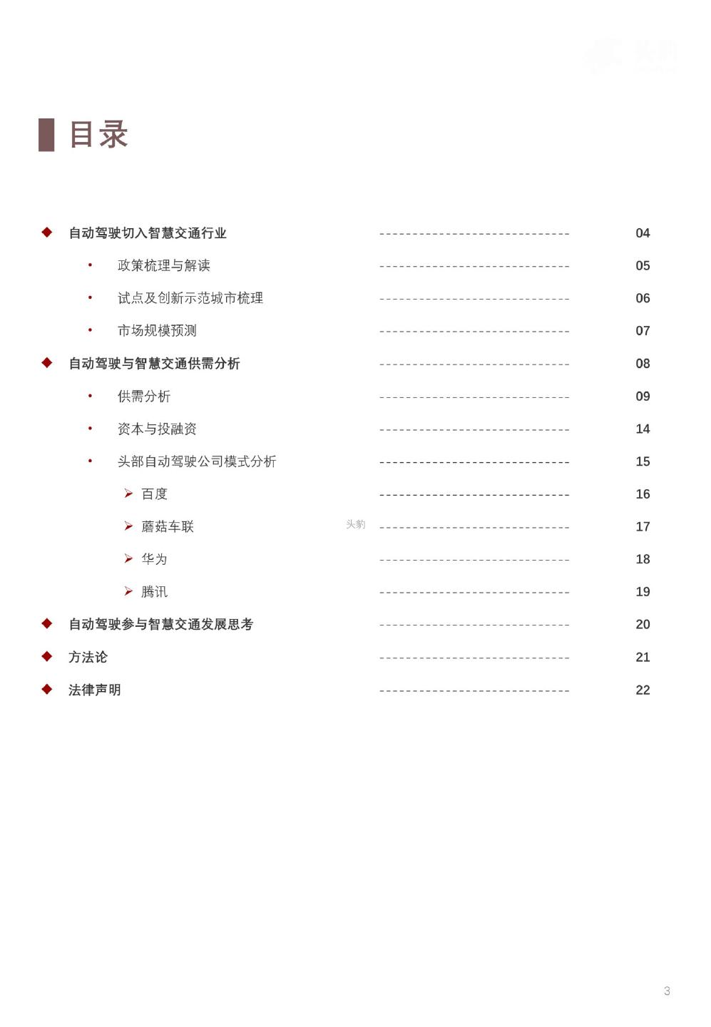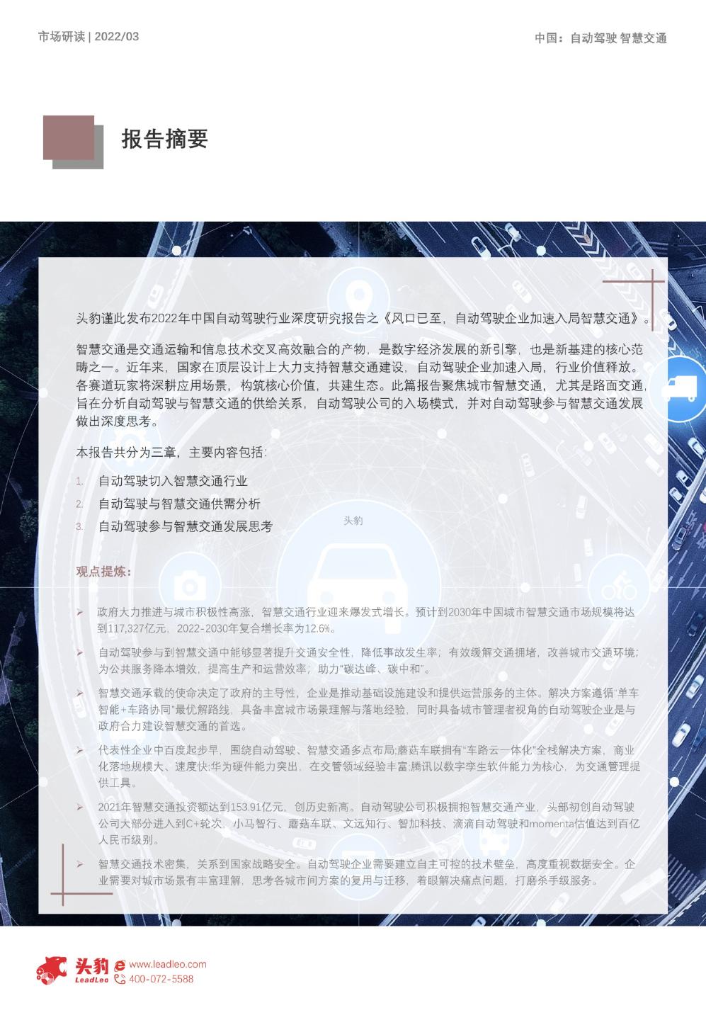 智慧交通是交通运输和信息技术交叉高效融合的产物,是数字经济发展的新引擎,也是新基建的核心范畴之一。近年来,国家在顶层设计上大力支持智慧交通建设,自动驾驶企业加速入局,行业价值释放。各赛道玩家将深耕应用场景,构筑核心价值,共建生态。此篇报告聚焦城市智慧交通,尤其是路面交通旨在分析自动驾驶与智慧交通的供给关系,自动驾驶公司的入场模式,并对自动驾驶参与智慧交通发展做出深度思考。
