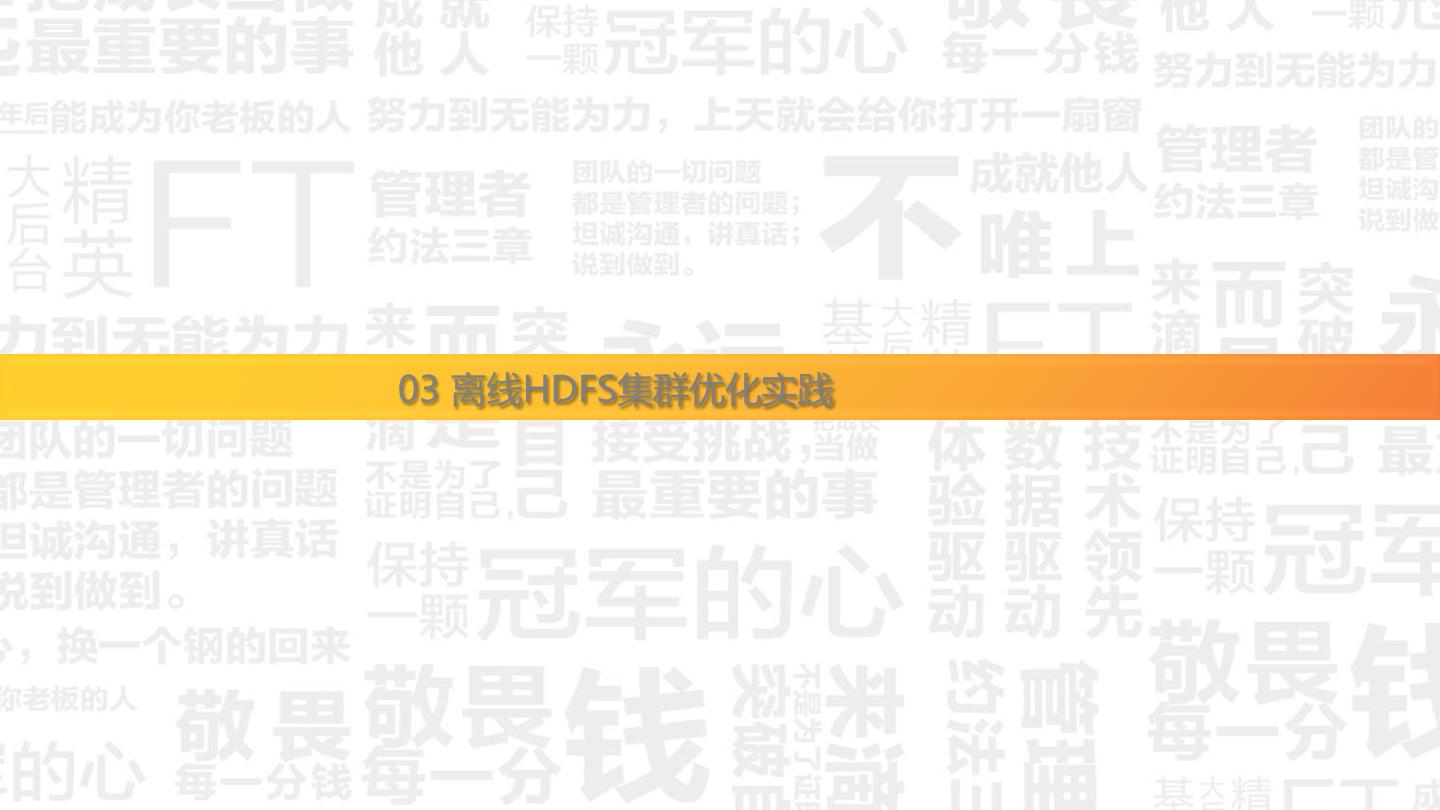 3 .OUTLINE 01 背景 目录 02 离线HDFS集群演进 CONTENTS 03 离线HDFS集群优化实践 04 未来规划