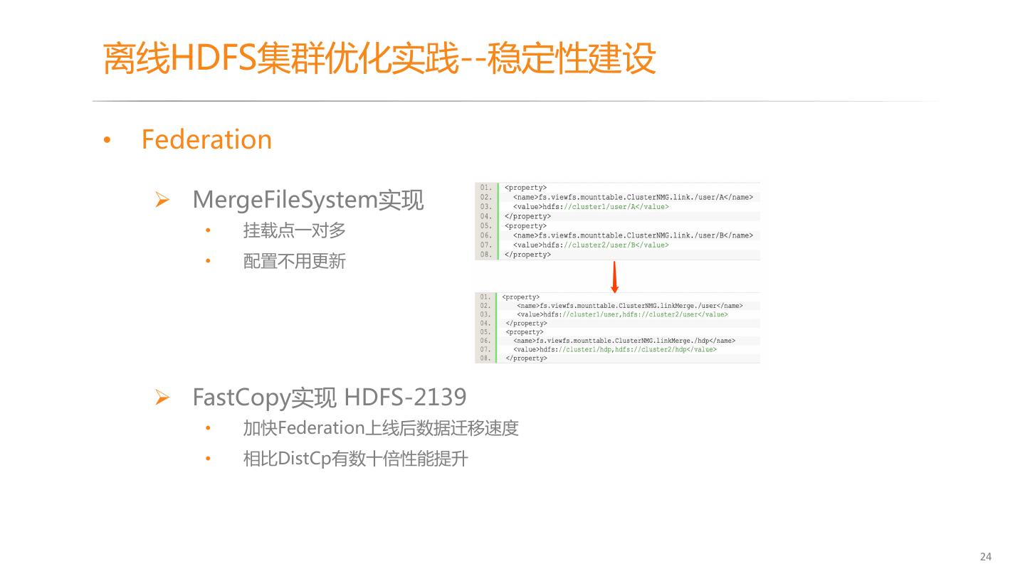 23 .离线HDFS集群优化实践--稳定性建设 • Federation + RBF( Router Based Federation ) 23