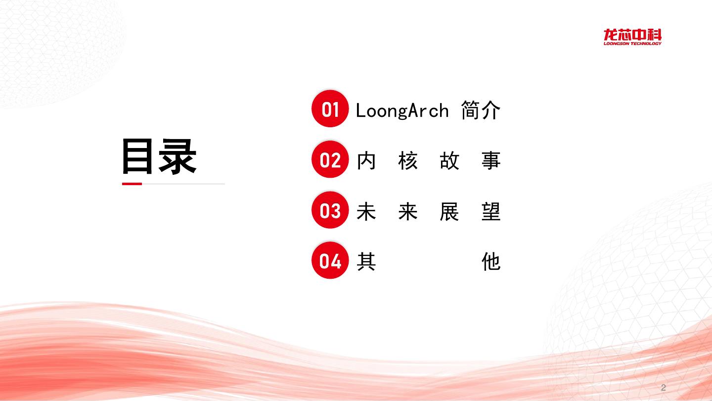 2 . LoongArch 简介 目录 内 核 故 事 未 来 展 望 其 他 2