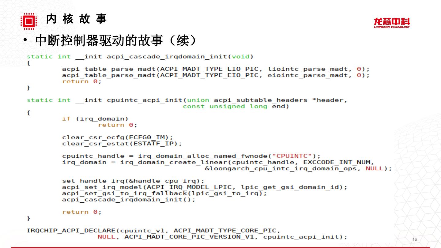 16 . 内 核 故 事 • 中断控制器驱动的故事(续) 16