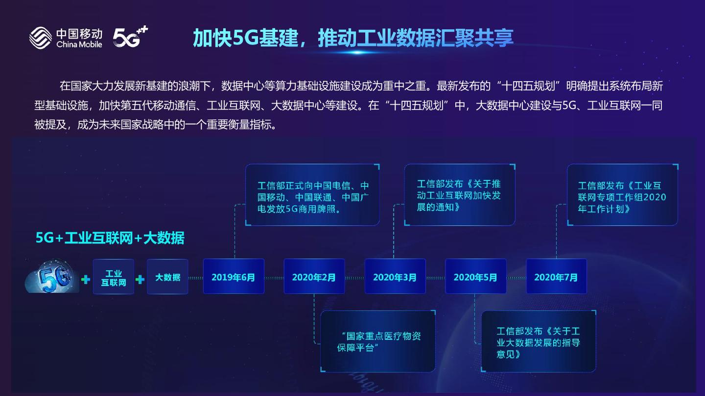 2 .1、“新基建”引领技术变革方向 2、网络+平台方案解工业数据困局 3、5G专网保障工业大数据业务与安全诉求 4、工业互联网大数据OLAP赋能行业应用 5、5G专网+工业大数据助力工厂数字化转型(案例) 6、工业大数据挑战与机遇并存