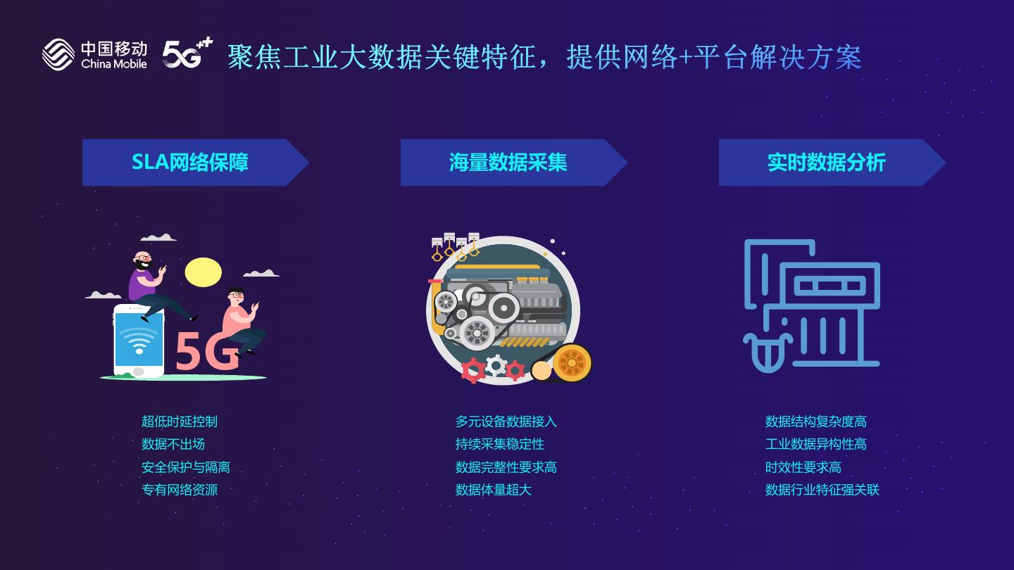 4 .SLA网络保障 海量数据采集 实时数据分析 5G 超低时延控制 多元设备数据接入 数据结构复杂度高 数据不出场 持续采集稳定性 工业数据异构性高 安全保护与隔离 数据完整性要求高 时效性要求高 专有网络资源 数据体量超大 数据行业特征强关联