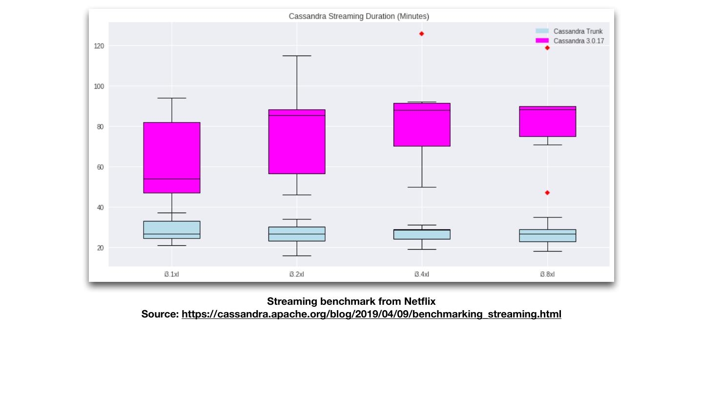 7 . Streaming benchmark from Netflix Source: https://cassandra.apache.org/blog/2019/04/09/benchmarking_streaming.html