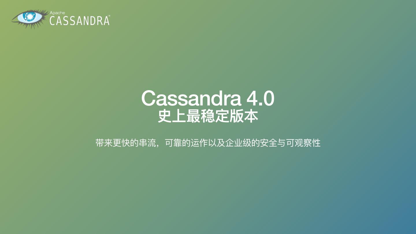 16 . Cassandra 4.0 史上最稳定版本 带来更快的串流,可靠的运作以及企业级的安全与可观察性