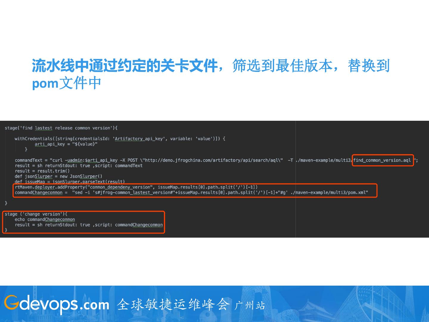 21 .流水线中通过约定的关卡文件,筛选到最佳版本,替换到 pom文件中 全球敏捷运维峰会 广州站