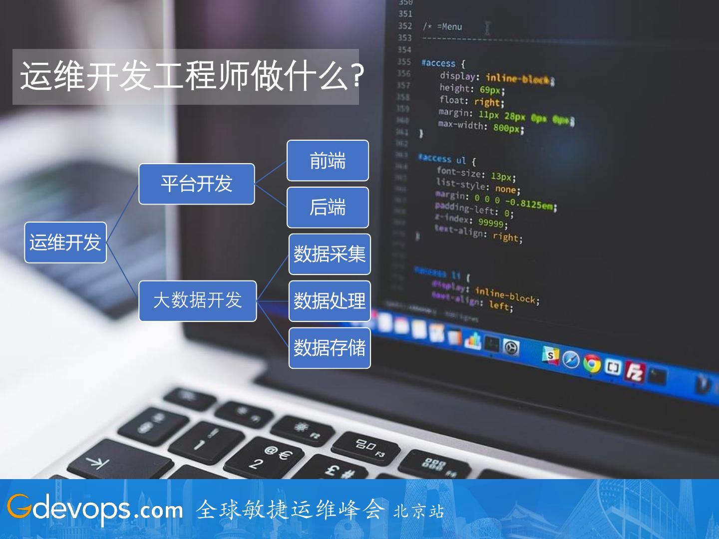 17 .运维开发工程师做什么? 前端 平台开发 后端 运维开发 数据采集 大数据开发 数据处理 数据存储 全球敏捷运维峰会 北京站