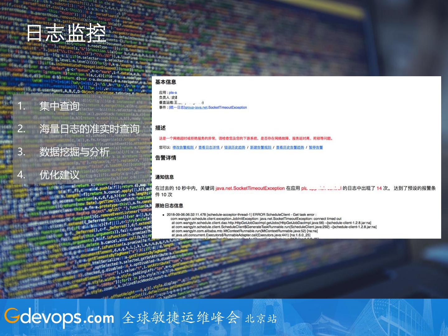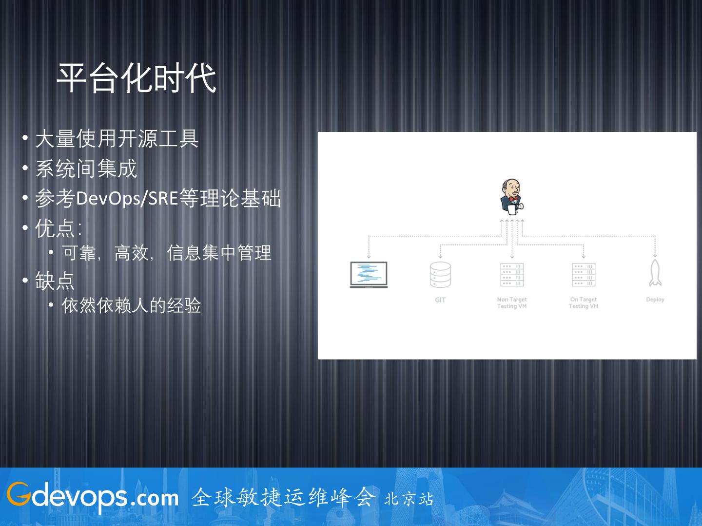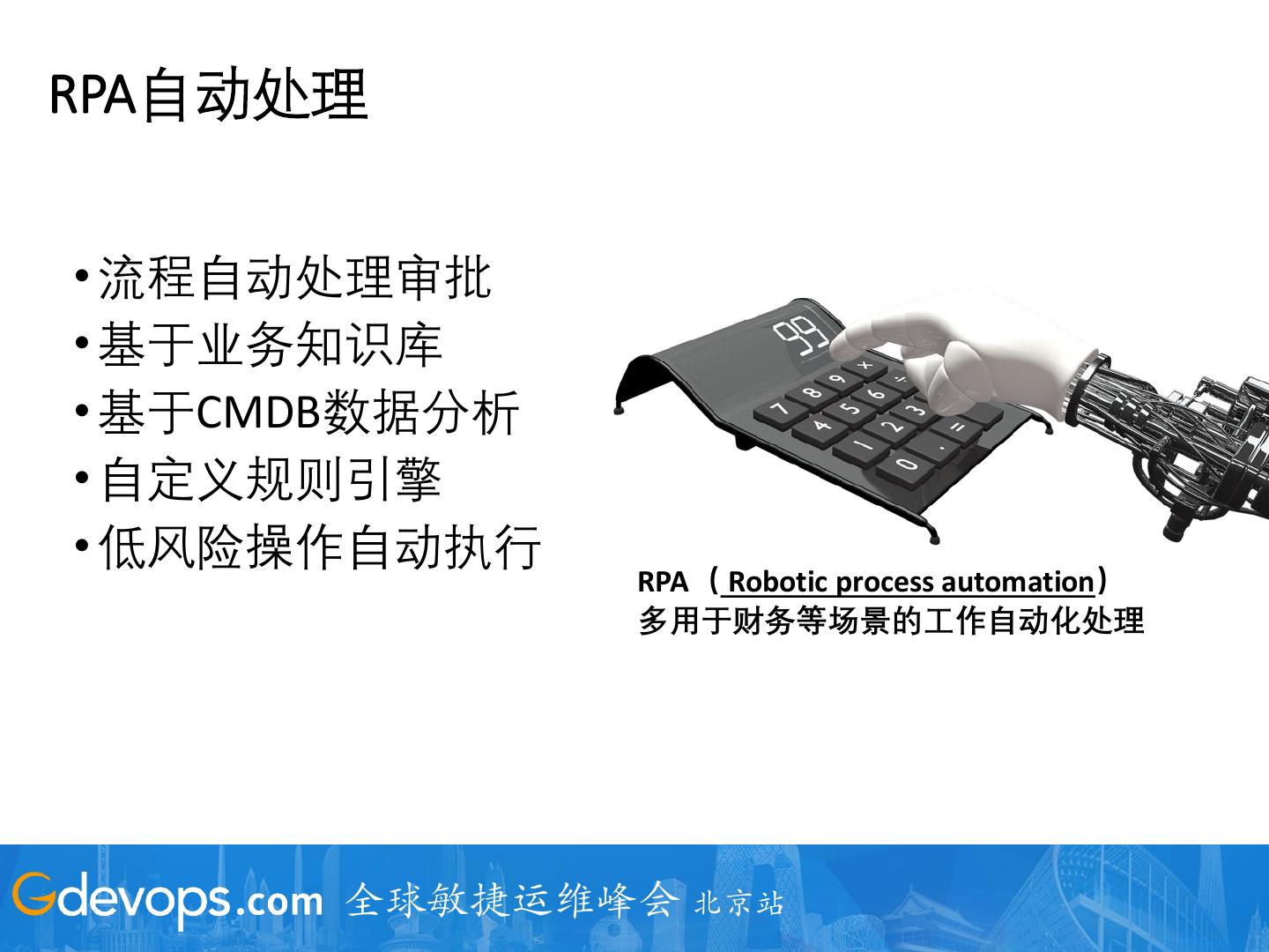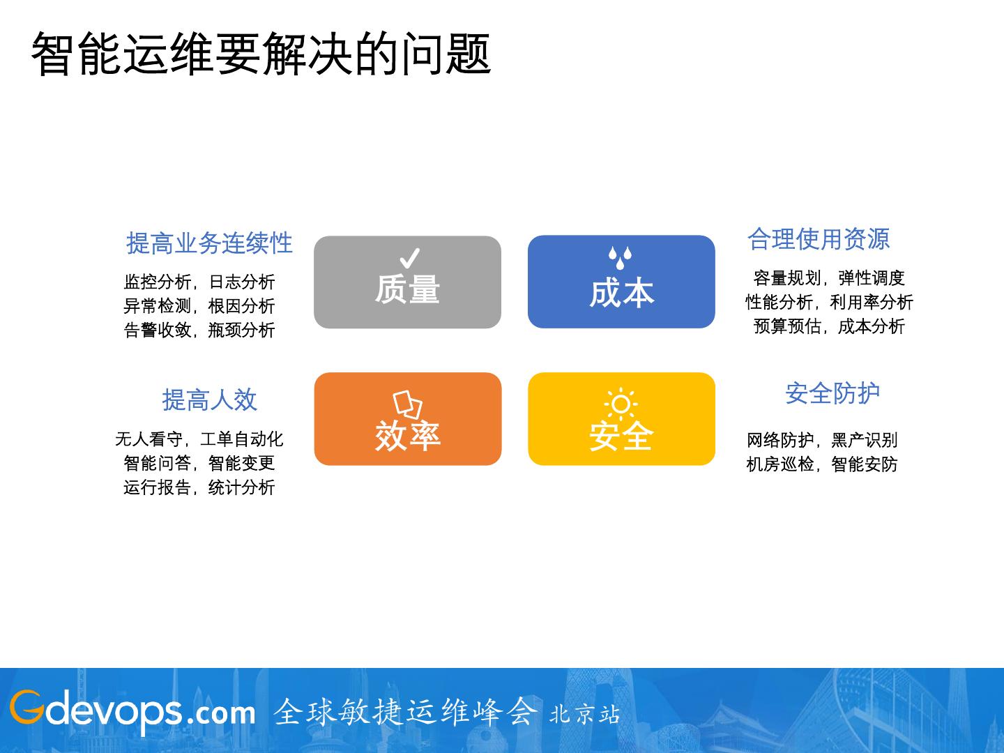 运维的变革俨然已经不是一个新鲜观点了,王超老师类比工业发展的几个阶段,引出如今运维面对的智能化考验。在这场考验中,三个至关重要的角色:运维工程师、运维开发及运维算法工程师。他明确指出了各个角色必须掌握的技术与担负的责任,三者合一,解决智能运维在质量、成本、效率、安全上的关键问题。他还分别针对质量提高、成本优化及效率提升这三个目标分享了京东数科内部的典型案例,让听众受益匪浅。