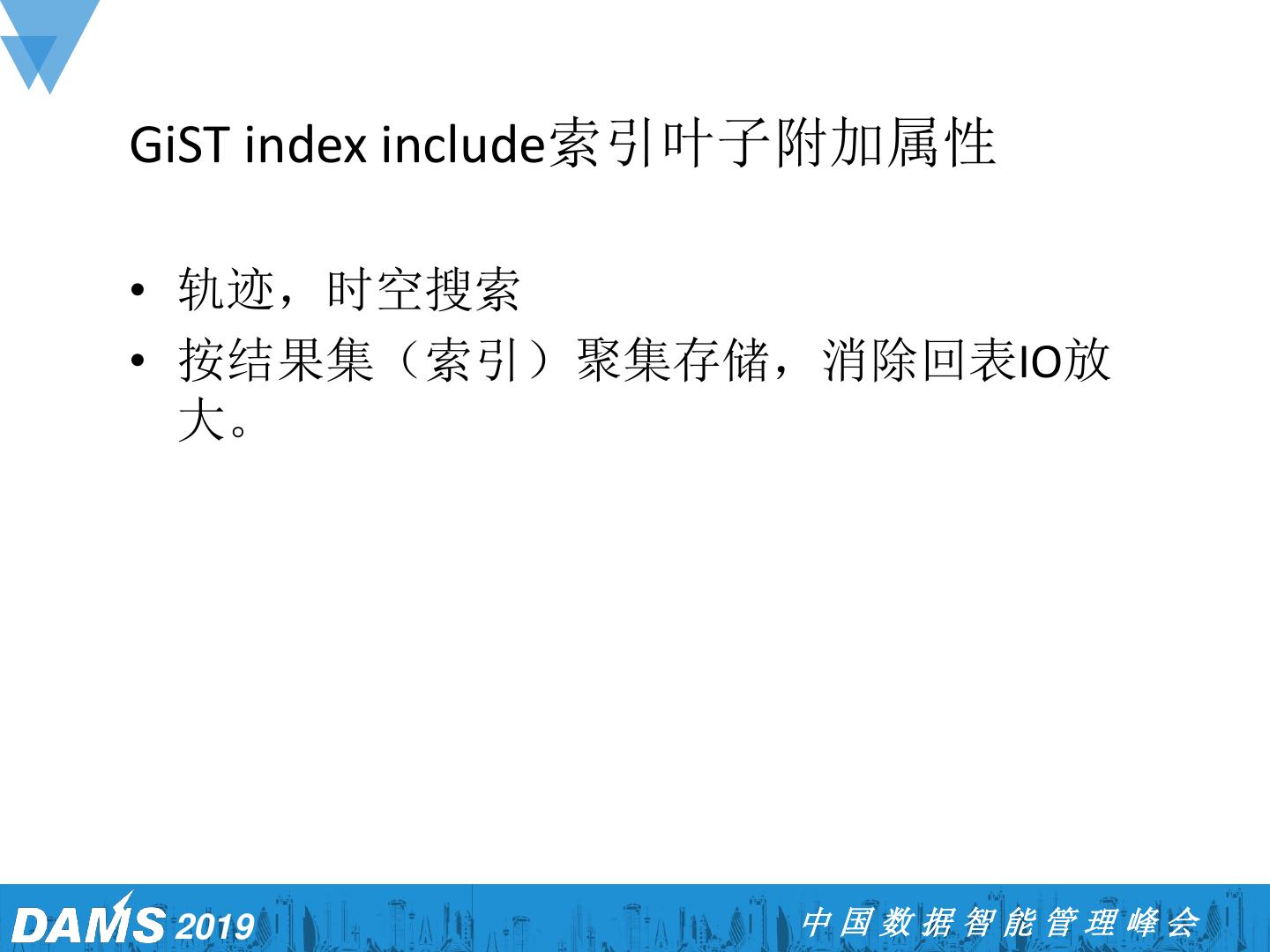 25 .btree index include索引叶子附加属性 • https://github.com/digoal/blog/blob/master/201905/20190503_03.md • 类似B+tree数据聚集, • create index idx_t1_1 on t1 (id) include(c1,c2,c3,info,crt_time); 2019 中国数据智能管理峰会