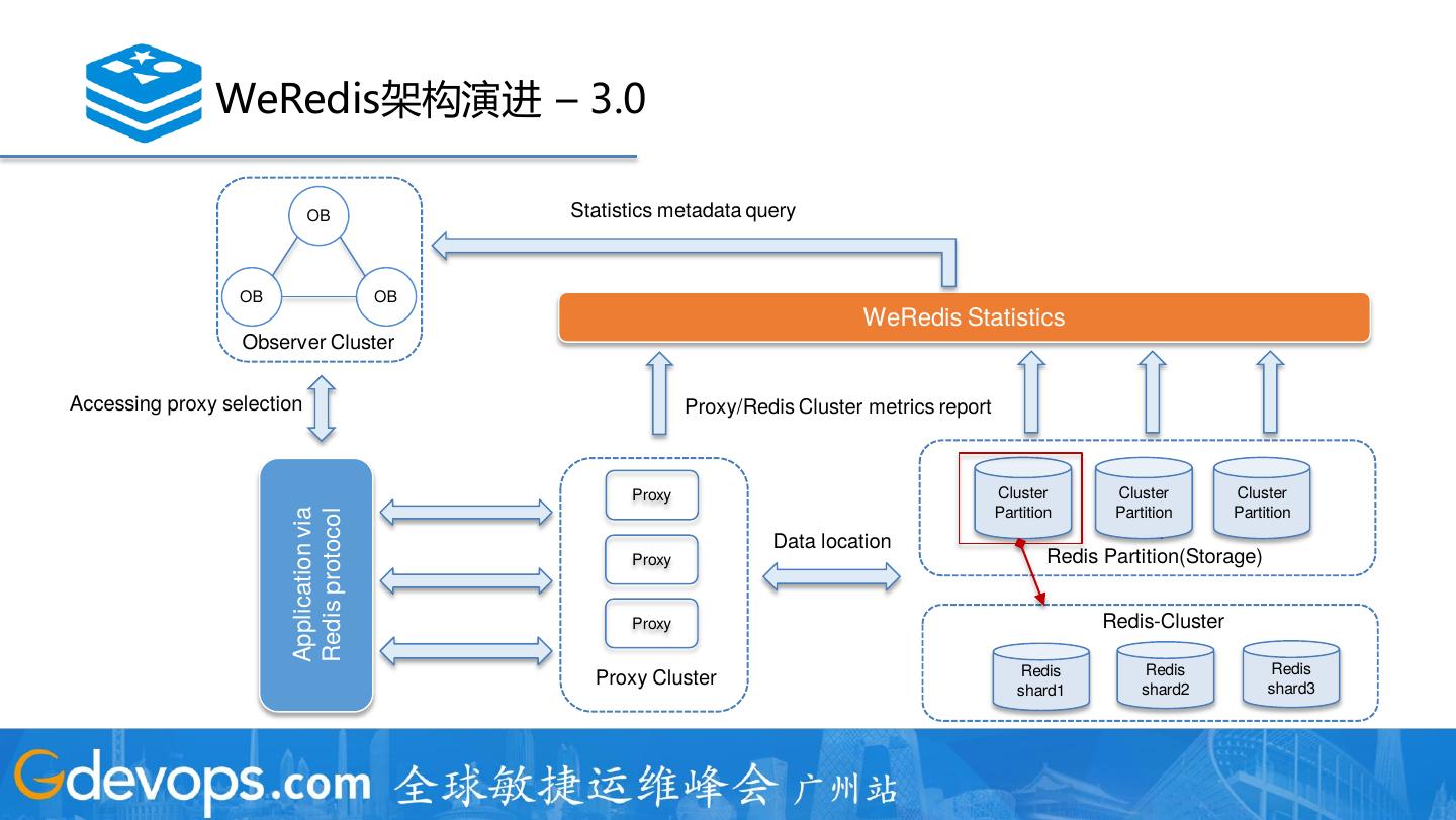 9 . WeRedis架构演进 – 3.0 OB Statistics metadata query OB OB WeRedis Statistics Observer Cluster Accessing proxy selection Proxy/Redis Cluster metrics report Proxy Cluster Cluster Cluster Application via Partition Partition Partition Redis protocol Data location … Proxy Redis Partition(Storage) Proxy Redis-Cluster Redis Redis Redis Proxy Cluster shard3 shard1 shard2 全球敏捷运维峰会 广州站 9