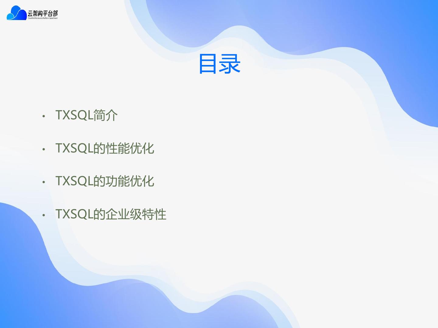 2 . 目录 • TXSQL简介 • TXSQL的性能优化 • TXSQL的功能优化 • TXSQL的企业级特性