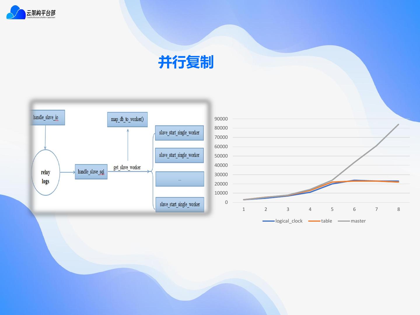 14 .并行复制 90000 80000 70000 60000 50000 40000 30000 20000 10000 0 1 2 3 4 5 6 7 8 logical_clock table master
