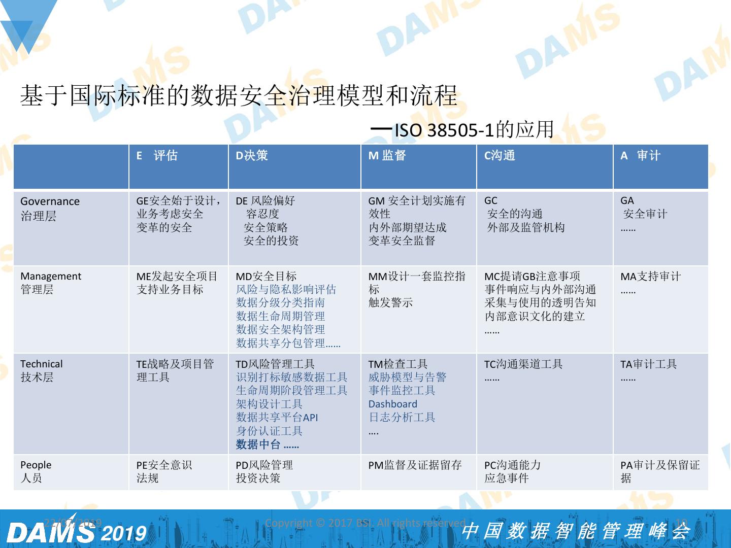 7 . 数据安全治理的 框架与模型 Copyright © 2017 BSI. All rights reserved 22/07/2019 7 2019 中国数据智能管理峰会