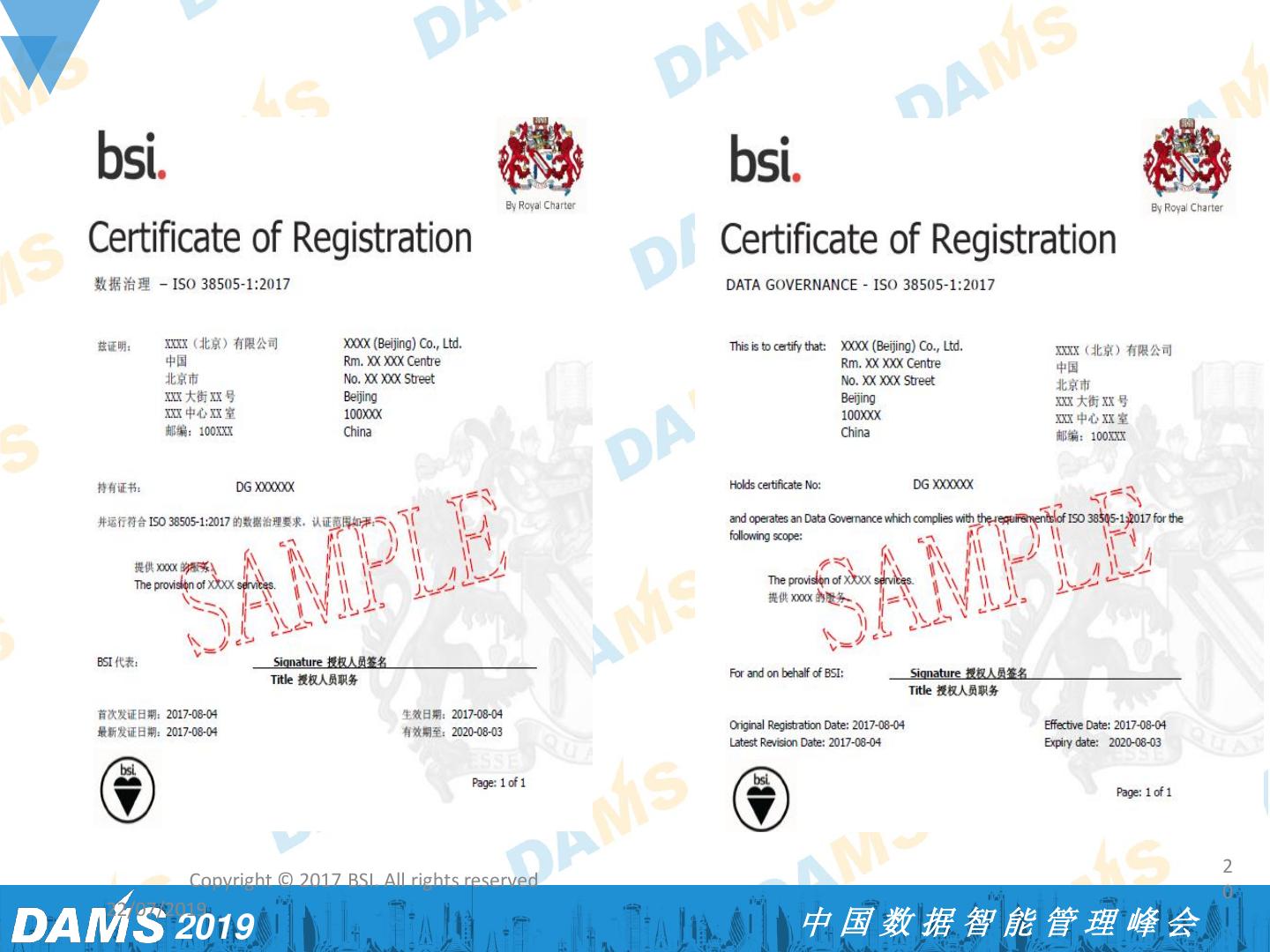 17 . 数据治理认证 做什么 Copyright © 2017 BSI. All rights reserved 22/07/2019 17 2019 中国数据智能管理峰会