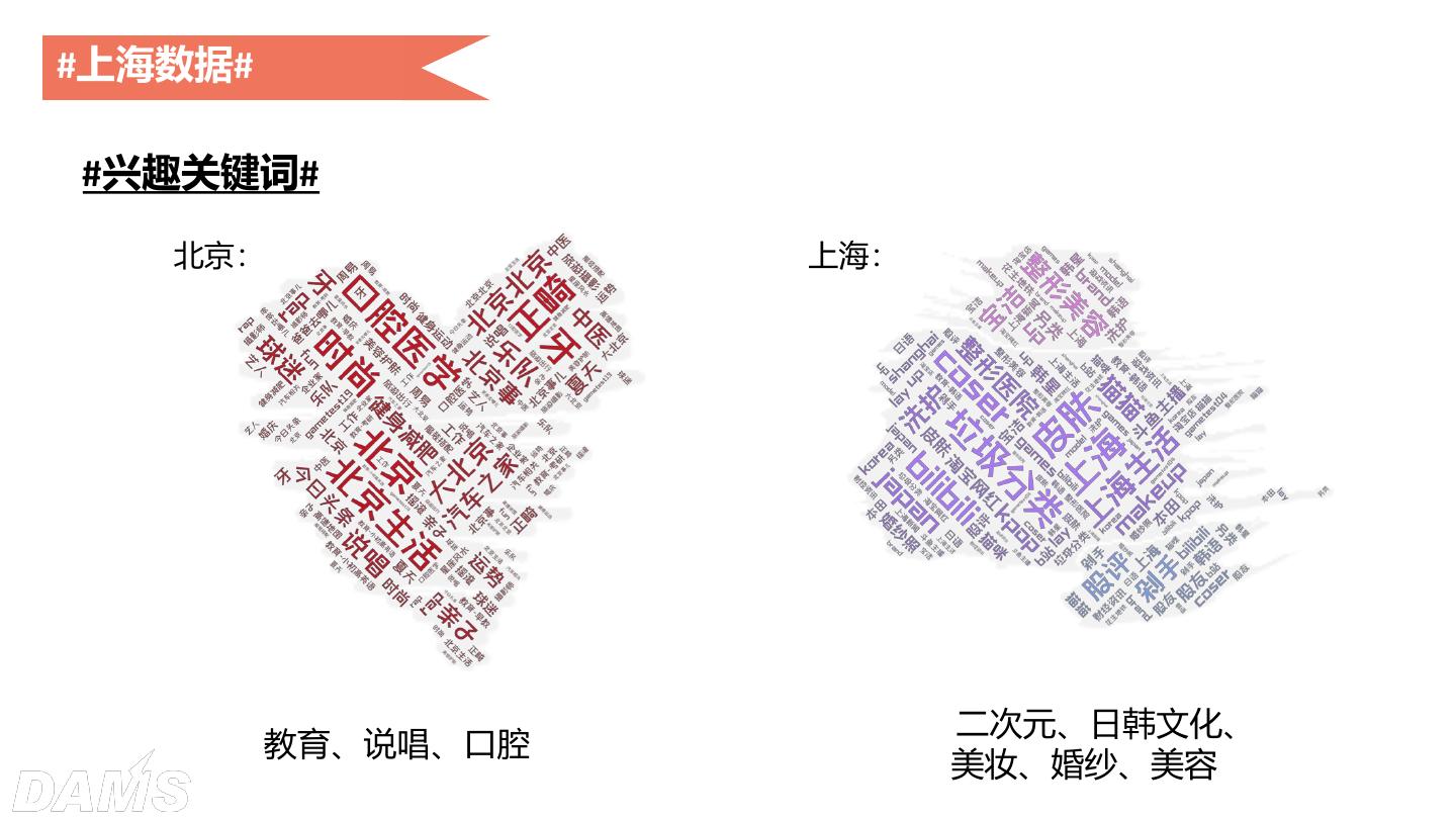 20 .#上海数据# #兴趣关键词# 北京: 上海: 二次元、日韩文化、 教育、说唱、口腔 美妆、婚纱、美容