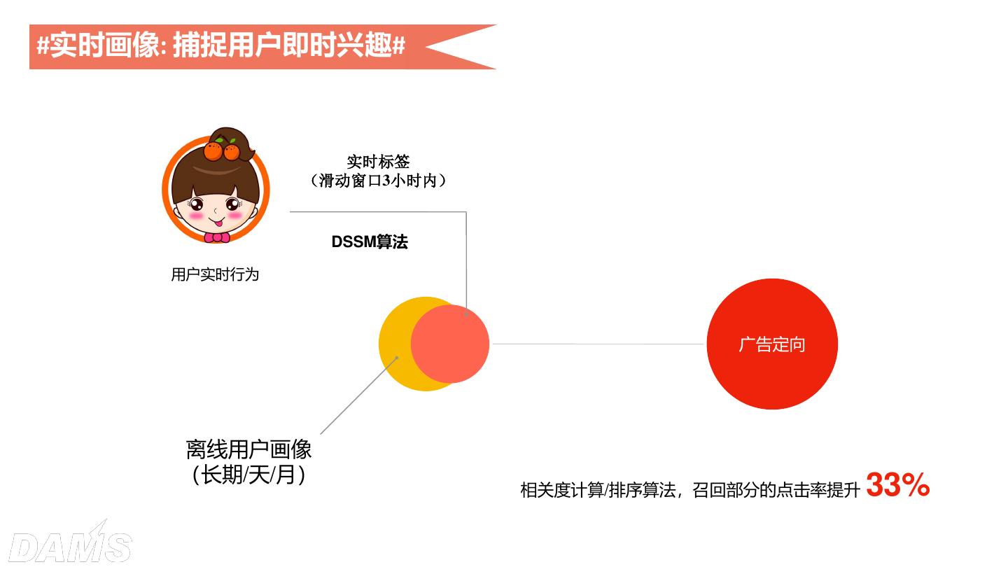 28 .#实时画像: 捕捉用户即时兴趣# 实时标签 (滑动窗口3小时内) DSSM算法 用户实时行为 广告定向 离线用户画像 (长期/天/月) 相关度计算/排序算法,召回部分的点击率提升 33%