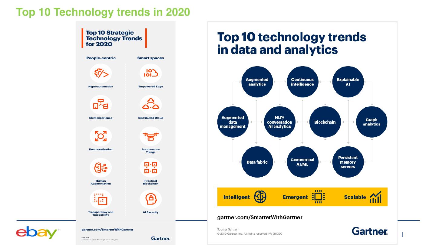 2 . Top 10 Technology trends in 2019 Strategic Data and Analytics Augmented Analytics Augmented Data Management Continuous Intelligence Explainable AI Graph Data Fabric NLP/ Conversational Analytics Commercial AI and ML Blockchain Persistent Memory Servers Gartner