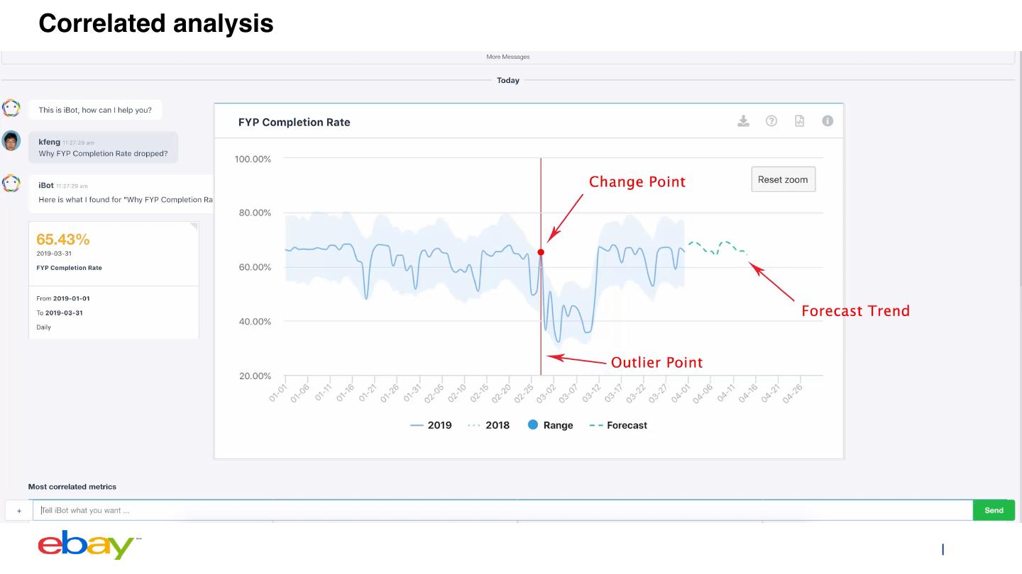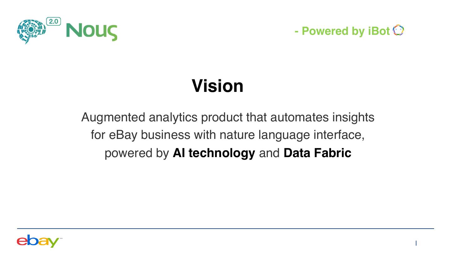 7 . - Powered by iBot Vision Augmented analytics product that automates insights for eBay business with nature language interface, powered by AI technology and Data Fabric