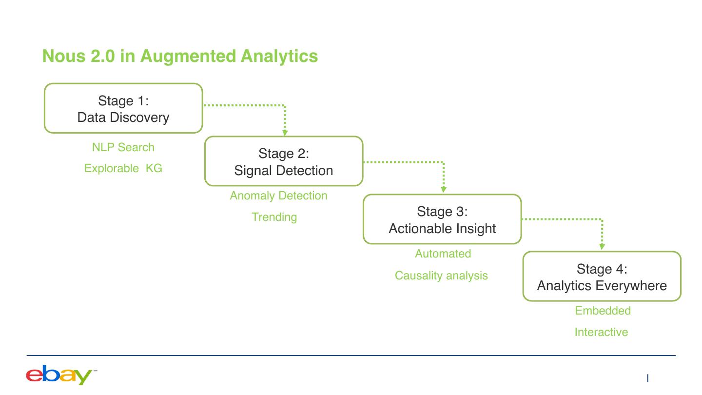 9 .Nous 2.0 in Augmented Analytics Stage 1: Data Discovery NLP Search Stage 2: Explorable KG Signal Detection Anomaly Detection Trending Stage 3: Actionable Insight Automated Causality analysis Stage 4: Analytics Everywhere Embedded Interactive