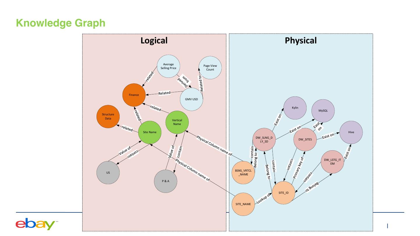 13 .Knowledge Graph Logical Physical Average Page View Selling Price Count Finance GMV USD Kylin MySQL Structure Data Vertical Name Site Name Hive DW_SLNG_D DW_SITES LY_SD DW_LSTG_IT EM BSNS_VRTCL US _NAME P&A SITE_ID SITE_NAME