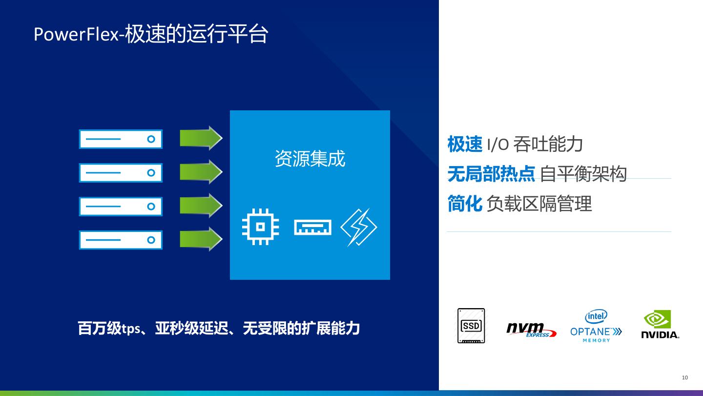 9 .PowerFlex 软件定义存储架构 PowerFlex C PowerFlex管理器 C 生命周期管理 S 性能线性扩展 S S 支持虚拟化或 S 快速数据重构 物理部署 99.9999% 极速性能 可扩展架构 计算和存储独自扩展 可用性 © 2022 VMware, Inc. 9