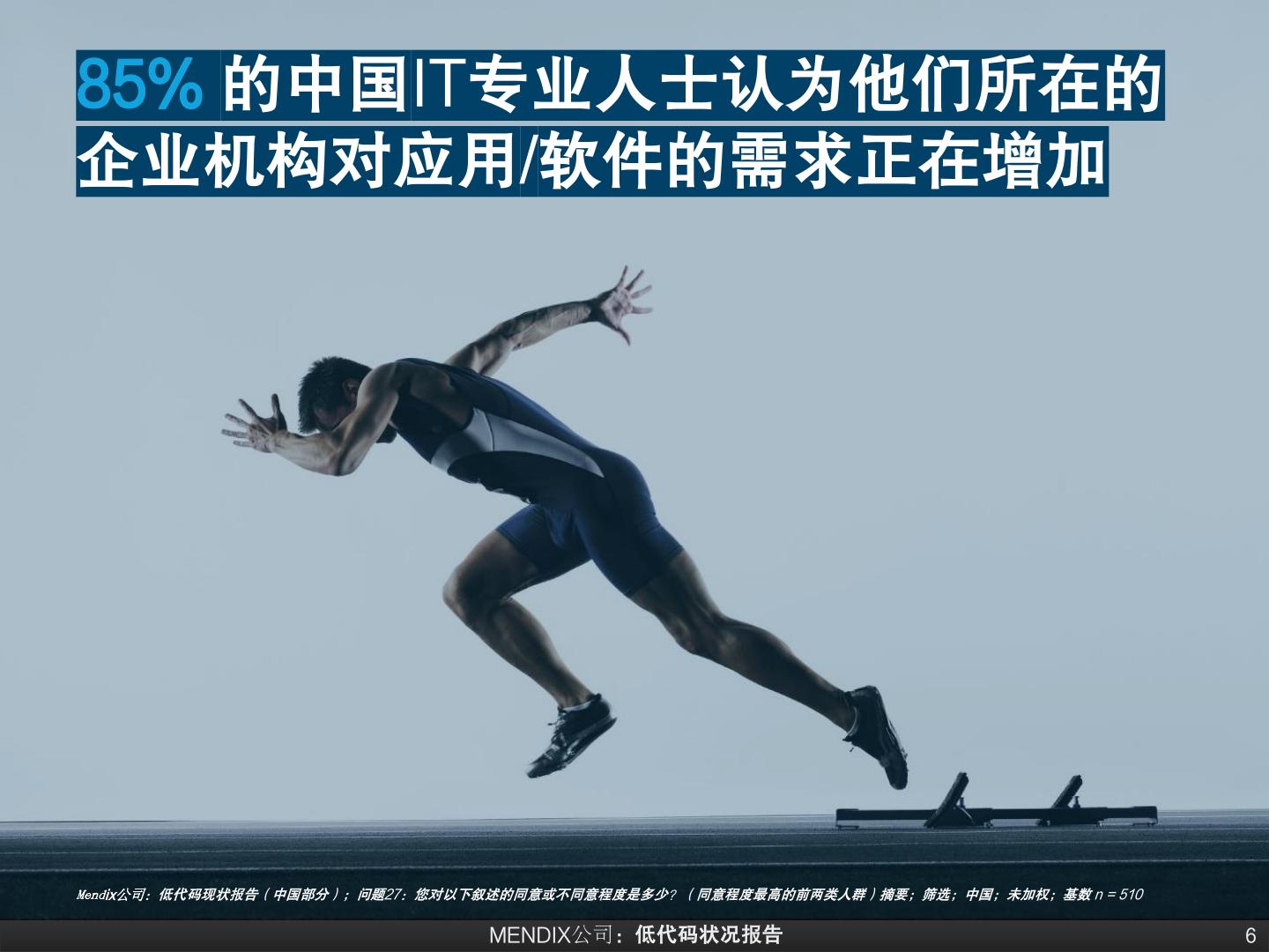 3 .在这个数字化程度惊 人的世界,85%的中 国IT决策者表示,低 代码是一项其所在企 业机构不容错过的趋 势。 MENDIX公司:低代码状况报告 3