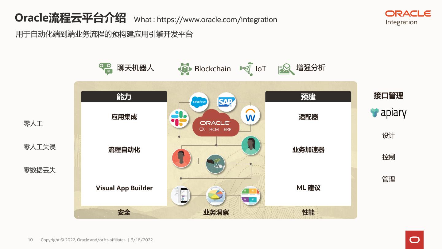 9 .APEX 低代码平台 Oracle APEX Oracle REST 数据服务 编程语言和框架 Oracle 数据库 实现任务关键型应用 程序的开发和部署 Perl 9 Copyright © 2022, Oracle and/or its affiliates | 3/18/2022