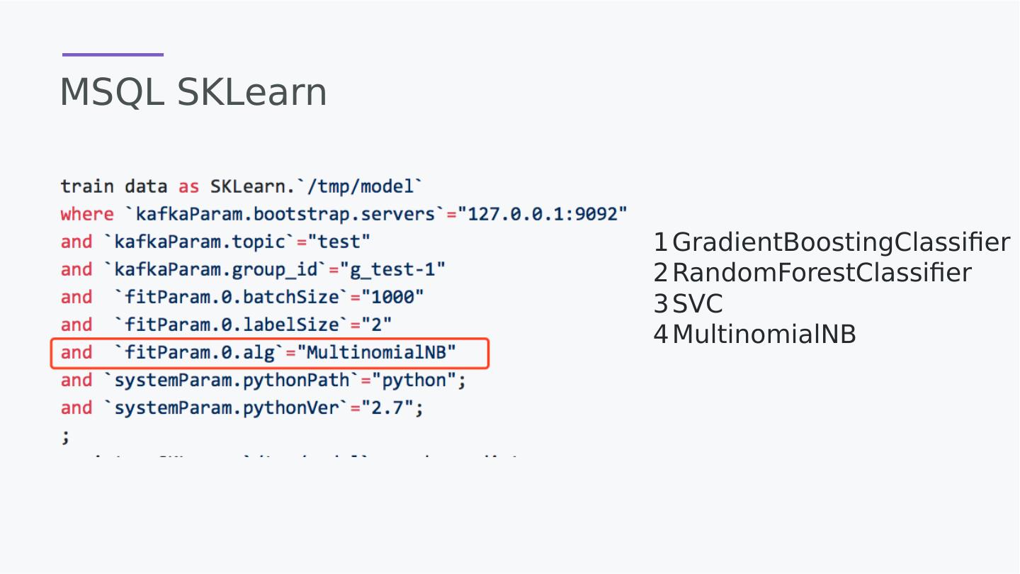 23 .MSQL SKLearn 1 GradientBoostingClassifier 2 RandomForestClassifier 3 SVC 4 MultinomialNB