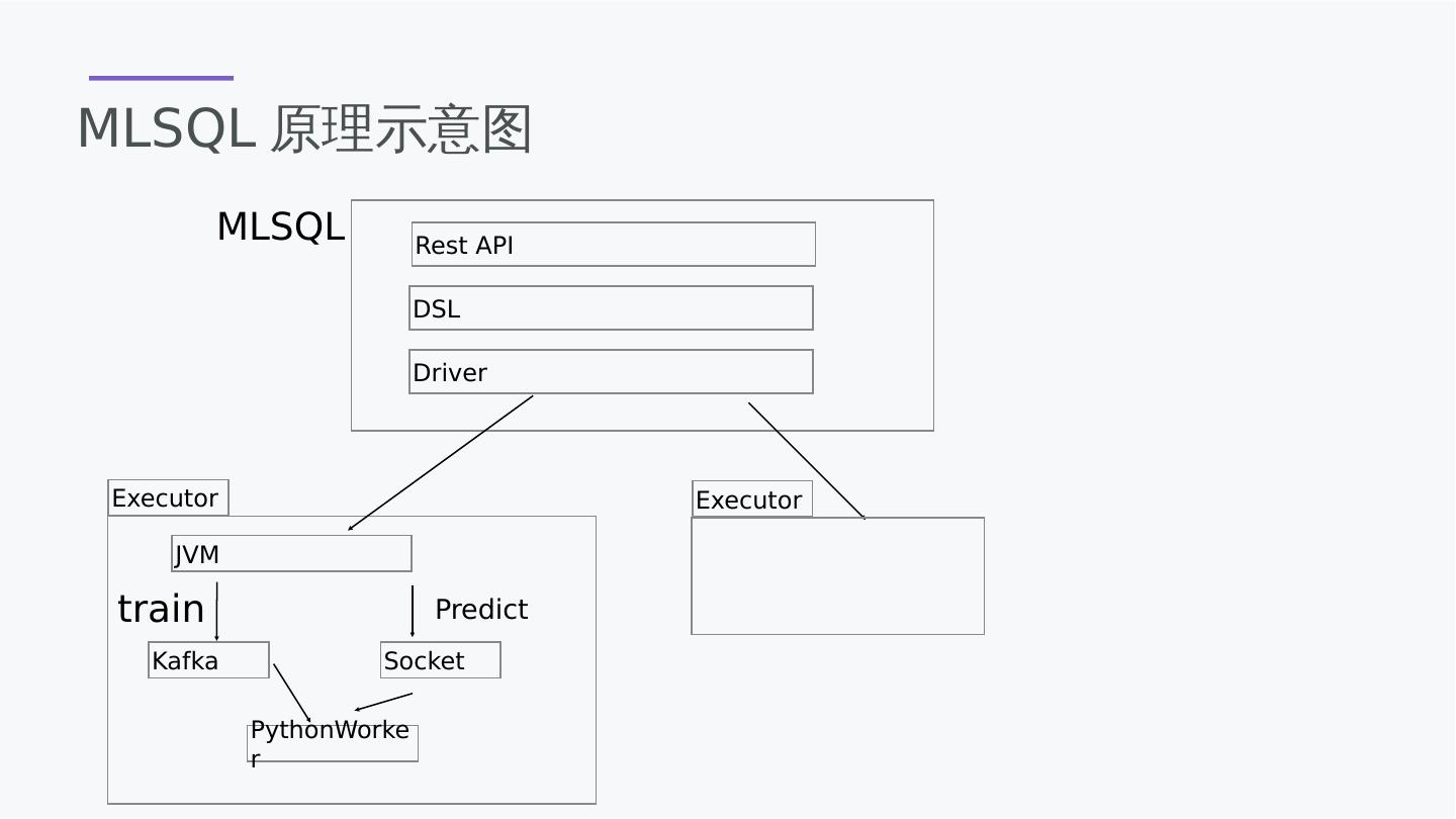 25 .MLSQL原理示意图 Rest API DSL Driver Executor JVM PythonWorker Executor train Kafka Predict Socket MLSQL