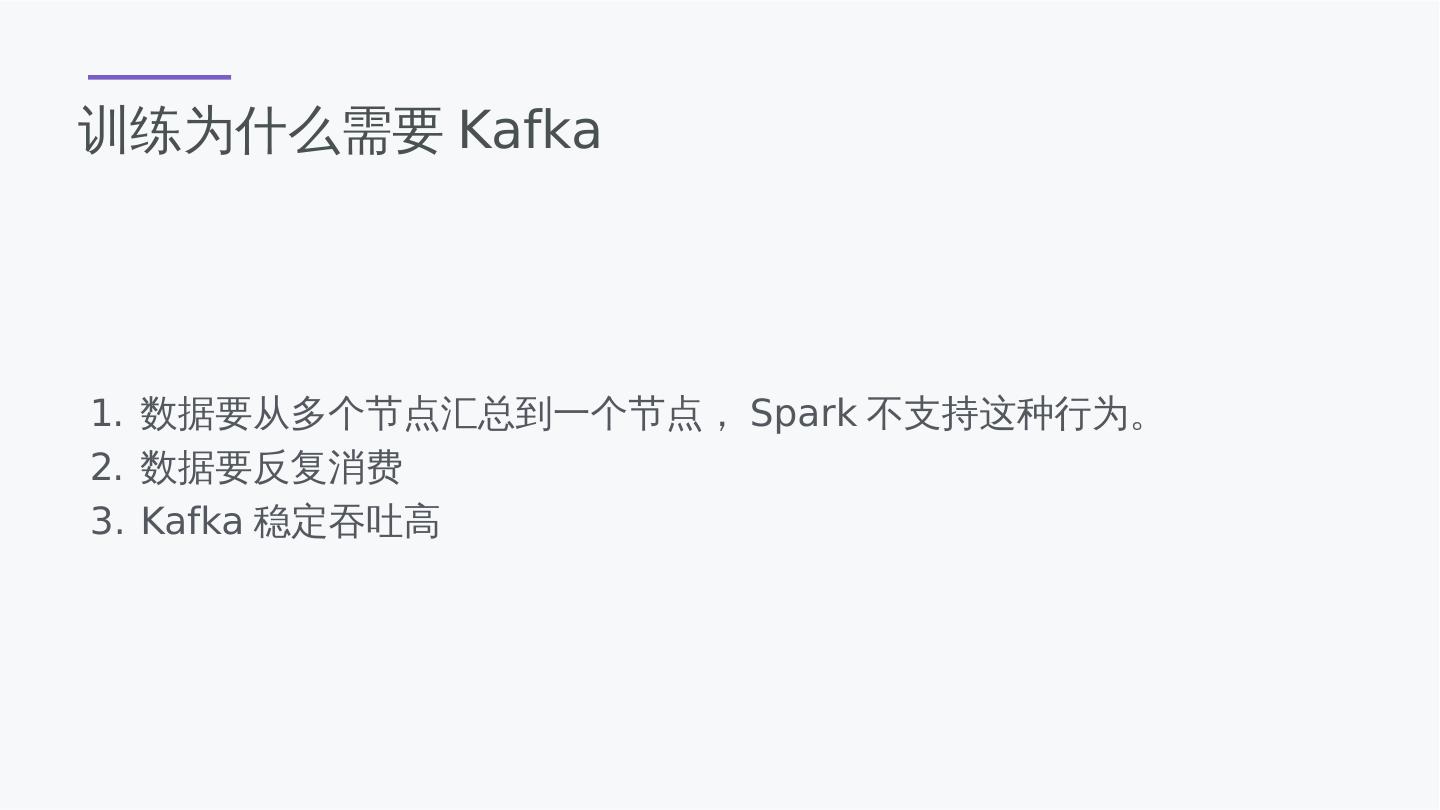 27 .训练为什么需要Kafka 数据要从多个节点汇总到一个节点,Spark不支持这种行为。 数据要反复消费 Kafka稳定吞吐高