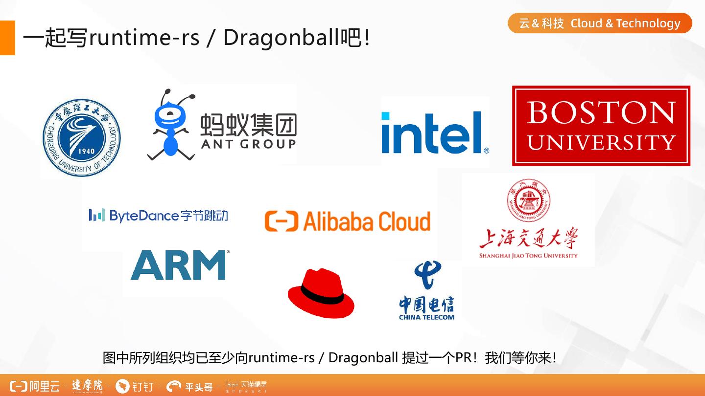 17 .一起写runtime-rs / Dragonball吧! 图中所列组织均已至少向runtime-rs / Dragonball 提过一个PR!我们等你来!