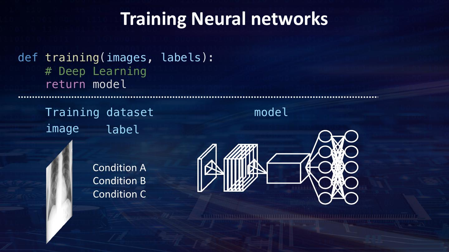 22 . Training Neural networks def training(images, labels): # Deep Learning return model Training dataset model image label Condition A Condition B Condition C