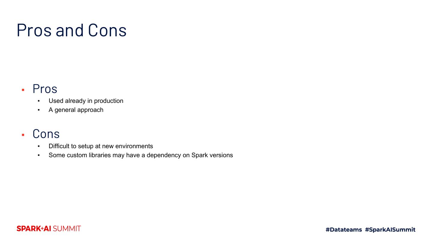 10 .Pros and Cons ▪ Pros ▪ Used already in production ▪ A general approach ▪ Cons ▪ Difficult to setup at new environments ▪ Some custom libraries may have a dependency on Spark versions