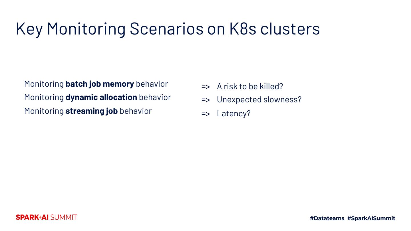 24 .Key Monitoring Scenarios on K8s clusters Monitoring batch job memory behavior => A risk to be killed? Monitoring dynamic allocation behavior => Unexpected slowness? Monitoring streaming job behavior => Latency?