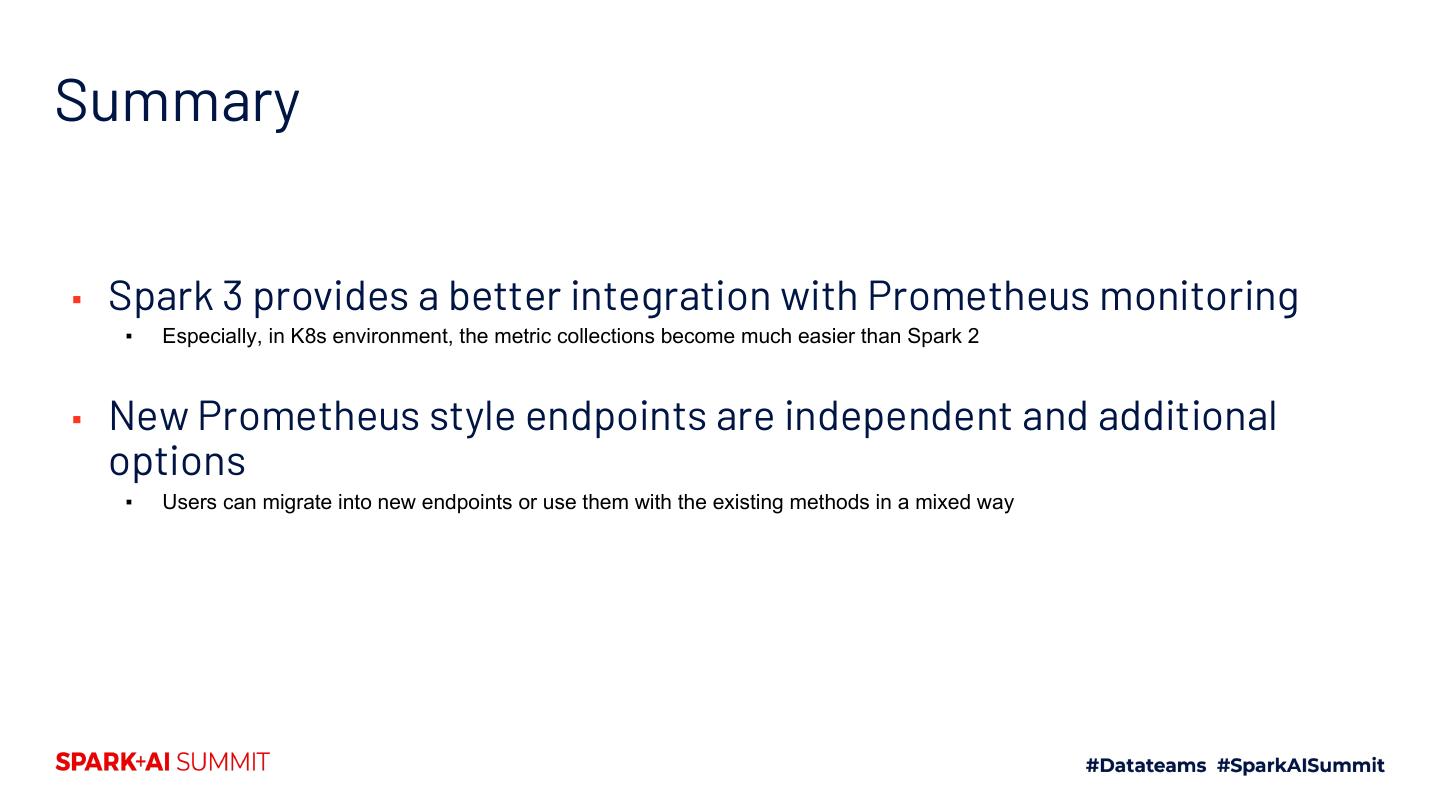 本次分享会为大家介绍在Apache Spark 3.0中对Prometheus监控的原生支持,包括如何使用Prometheus特性、目前已经实现的metrics、以及如何对structured streaming 作业进行监控等。
