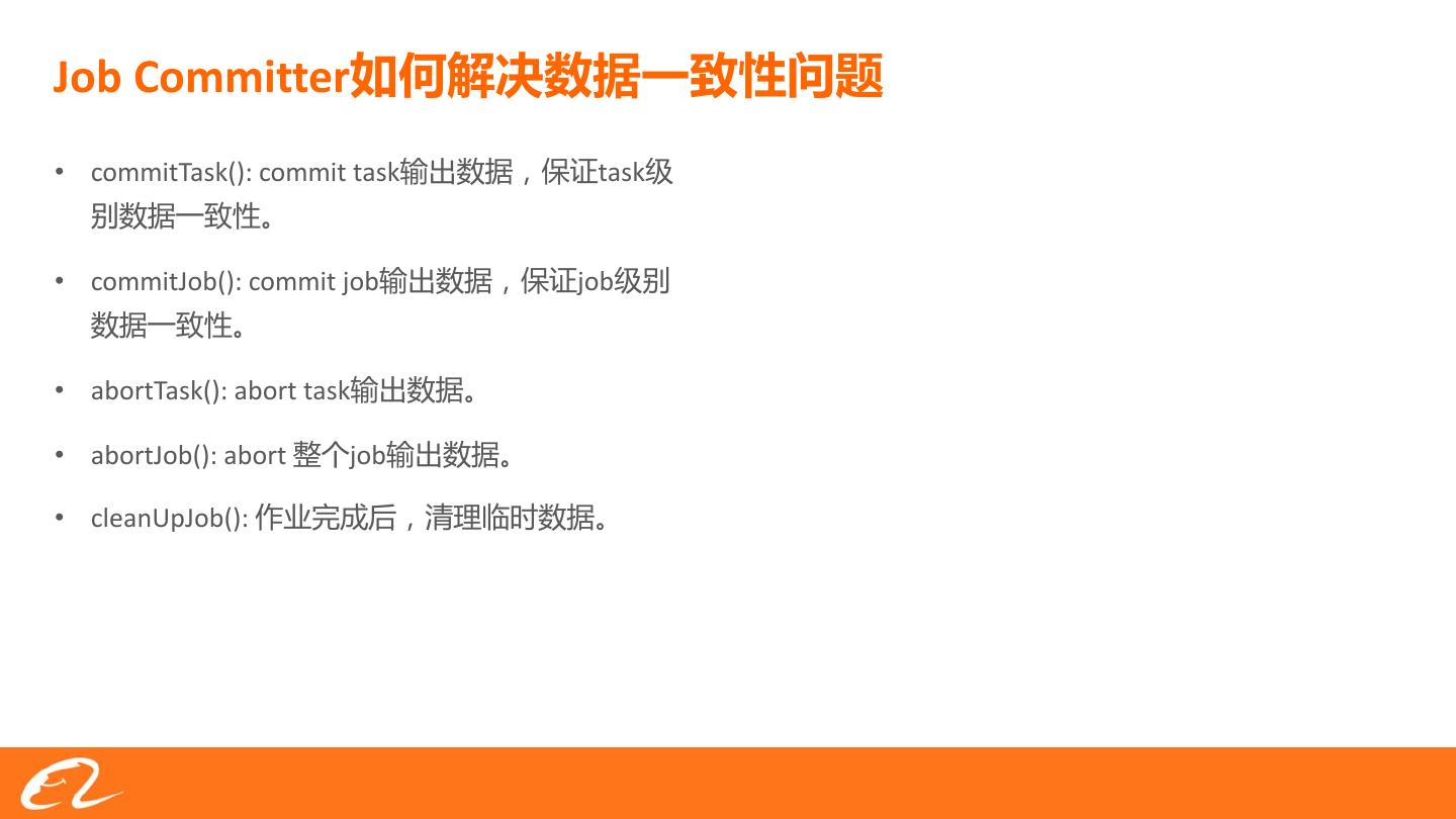 4 .为什么需要Job Committer? 在各种异常情况下保证任务最终输出数据的一 致性: 1. 任务失败 2. 作业重试 3. Speculative task