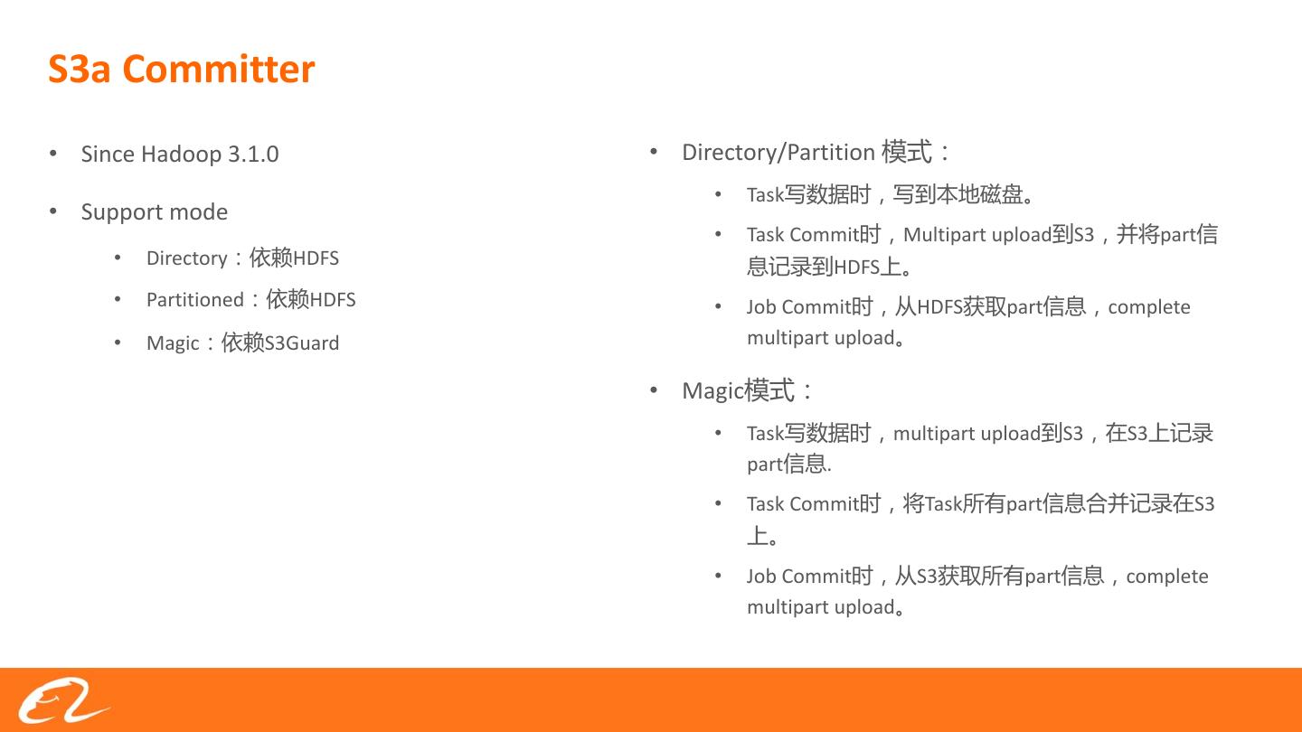 Job Committer是Mapreduce/Spark等分布式计算框架的重要组成部分,为分布式任务的写入提供一致性的保证,本次分享主要介绍Job Committer的演进历史,以及社区和EMR在S3/OSS等云存储上的最新进展。