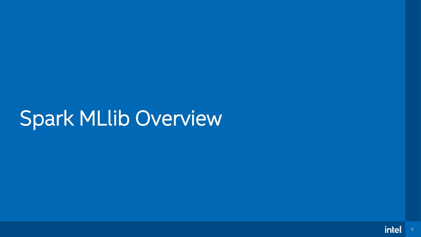 4 . Agenda ▪ Spark MLlib Overview ▪ Intel MLlib Introduction ▪ Optimized K-means in Intel MLlib ▪ Conclusion IAGS Intel Architecture, Graphics, and Software 4