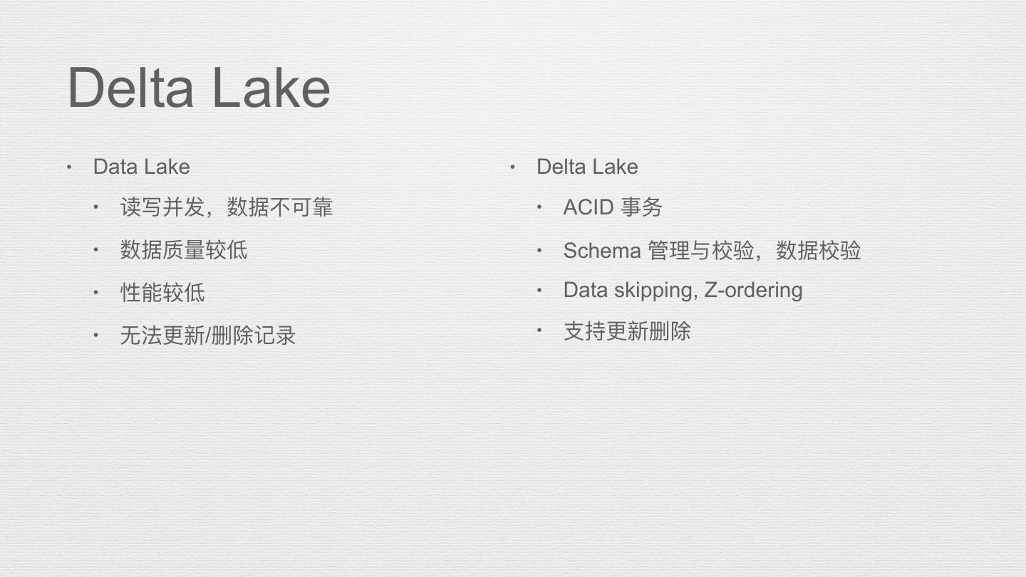 内容简介:Delta Lake 是 Databricks 推出的一种新型的数据湖方案,解决了传统数据湖方案中的诸多痛点。其中的核心组件 Delta 也于近期开源。本次分享将围绕 Delta Lake 和 Delta 的诸多细节展开,如 Delta Lake 的适用场景、技术优势,Delta 的原理实现以及一些高级特性等,并就现有解决方案做横向对比。